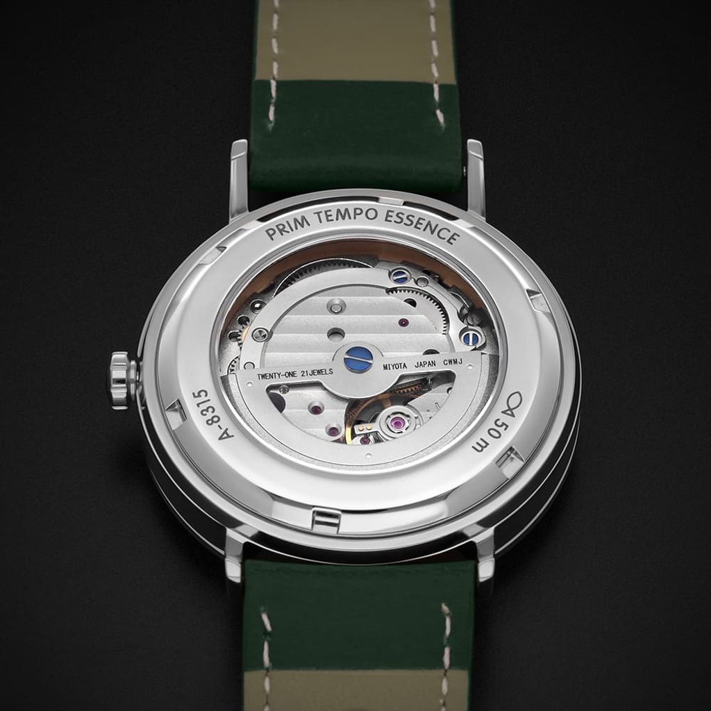 Uvnitř hodinek pracuje kvalitní a spolehlivý japonský strojek Miyota 8315 s automatickým nátahem. Ten pracuje na frekvenci 21600 polokmitů za hodinu, disponuje 21 kameny a rezervou chodu 42 hodin. Model také disponuje praktickou funkcí data na pozici 3. hodiny.