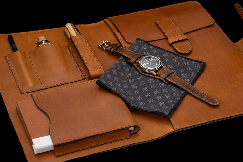 Velkou péči se věnovalo také balení unikátní edice. Kožené cestovní desky, vytvořené společně s řemínkem hodinek brašnářem Pavlem Matoušem, ukrývají zápisník z ručního papíru z Velkých Losin, hadřík s piktogramem na čištění hodinek i plnicí pero z manufaktury Wood-Factory vyrobené z materiálu Zebrano, které nese stejné číslo jako hodinky. V balení je ještě ukryt náhradní řemínek z kaučuku, vystěžejkovač Při otevření desek s hodinkami budete okouzleni nejen vůní kůže. Věříme, že ucítíte také vůni dobrodružství. Staňte se s touto limitovanou edicí jeho součástí!