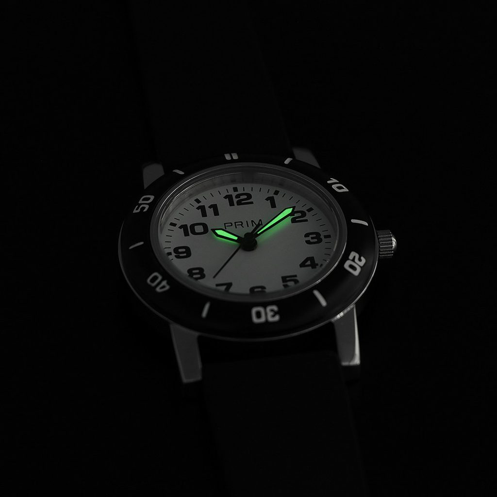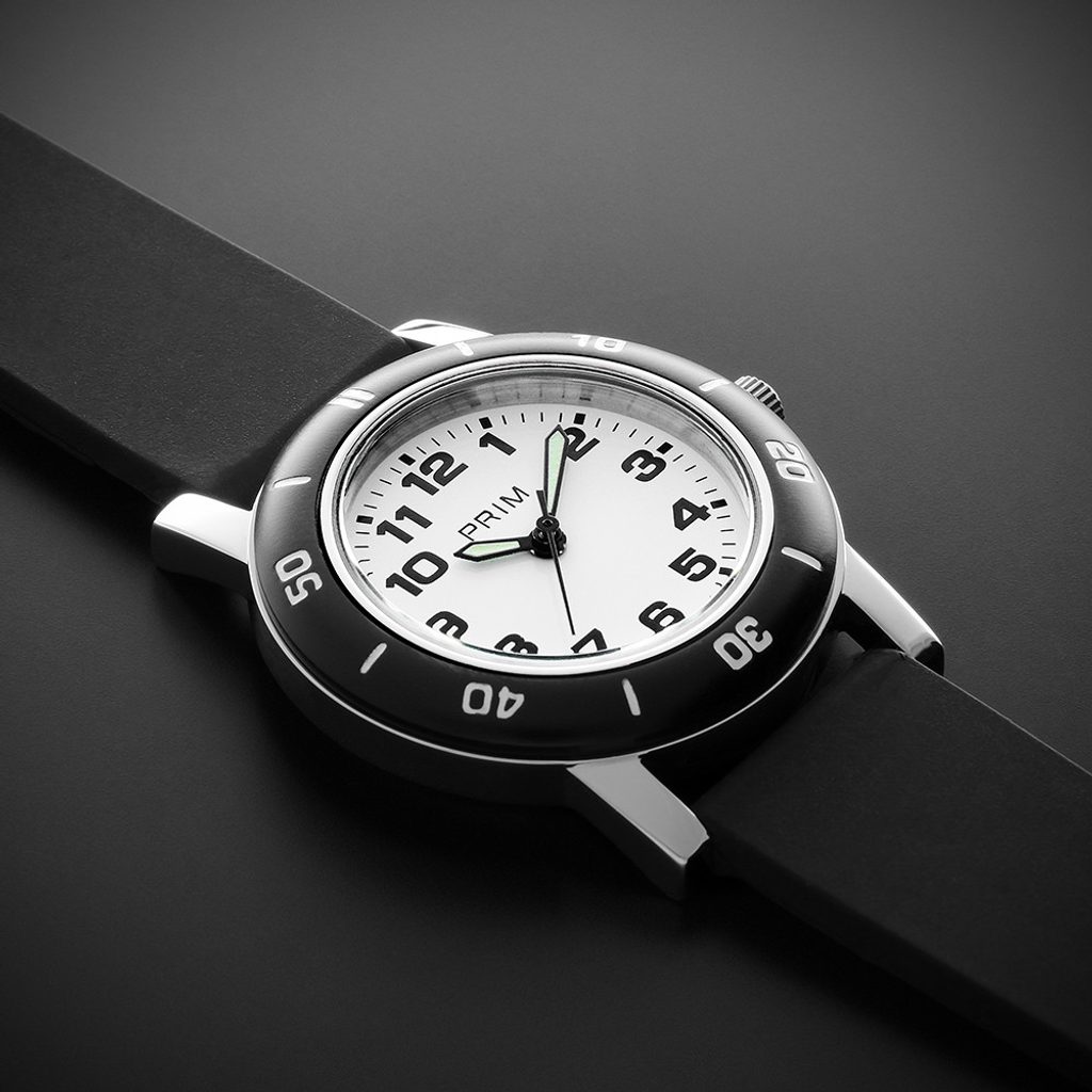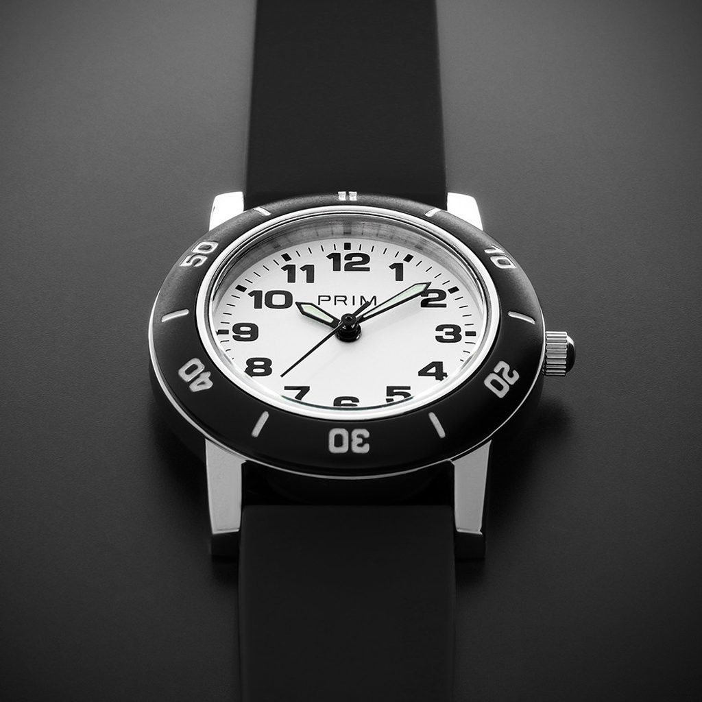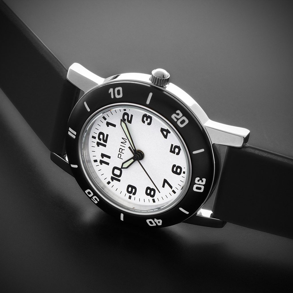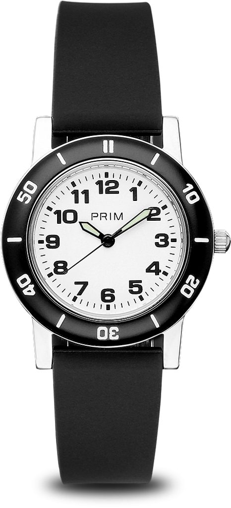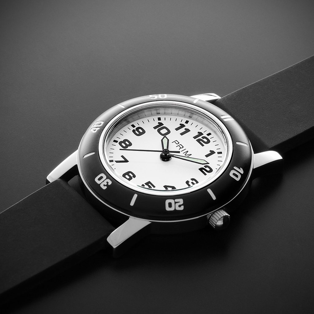 Tým grafiků se nechal inspirovat čitelným a lehce rozpoznatelným číselníkem s arabskými číslicemi v barvách kroužku a doplnil model barevnými ručičkami. Byly zvoleny také pestré barvy, ze kterých si vybere každý školák a naučí se tak rozpoznávat čas na svých prvních PRIM hodinkách. Praktické je také zobrazení minut na fixním okruží, které pomohou rozpoznat čas. Hodinky jsou kompletně vyrobeny z ušlechtilé oceli 316L a na ruce drží díky silikonovému řemínku.
