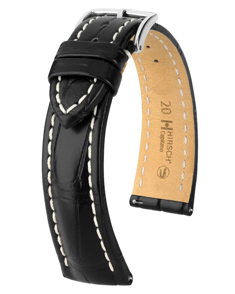 Co řemínek, to naprostý unikát. Řemínek z kolekce Capitano je zkrátka výjimečný v každém ohledu. Nejenže zaujme svým úžasným materiálem, ale nadchne také svou pevností, objemností, hedvábným povrchem a atraktivním designem se vzorem aligátora. Kromě svého sportovního až elegantního nádechu je samozřejmostí kontrastní prošívání i ručně šité švy. Okraje řemínku jsou přebordované a ručně lakované třemi tóny. Právě díky tomu řemínek působí o to luxusnějším dojmem.