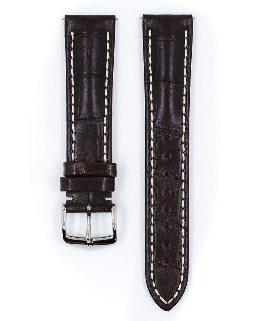 Originalitu řemínku tvoří také pečlivě vybraný materiál. Řemínek je vyrobený z vodoodpudivé aligátorské kůže, která se může chlubit broušeným povrchem a speciálním dvoubarevným tónováním. Pro maximální pohodlí byla zvolena vysoce kvalitní podšívka SilkGlove a také silné polstrování.