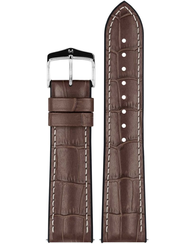 Klasika nikdy nevyjde z módy, a to samé platí také o řemínku z kolekce George, který okouzlí většinu žen i mužů. Nadčasový řemínek vás osloví svou sportovní až klasickou elegancí, stejně tak svým designem, který kombinuje realistický vzor aligátora s polomatným povrchem i kontrastním patentovým švem. Luxusní řemínek díky svému zpracování podtrhne vaše sebevědomí i osobitý styl.