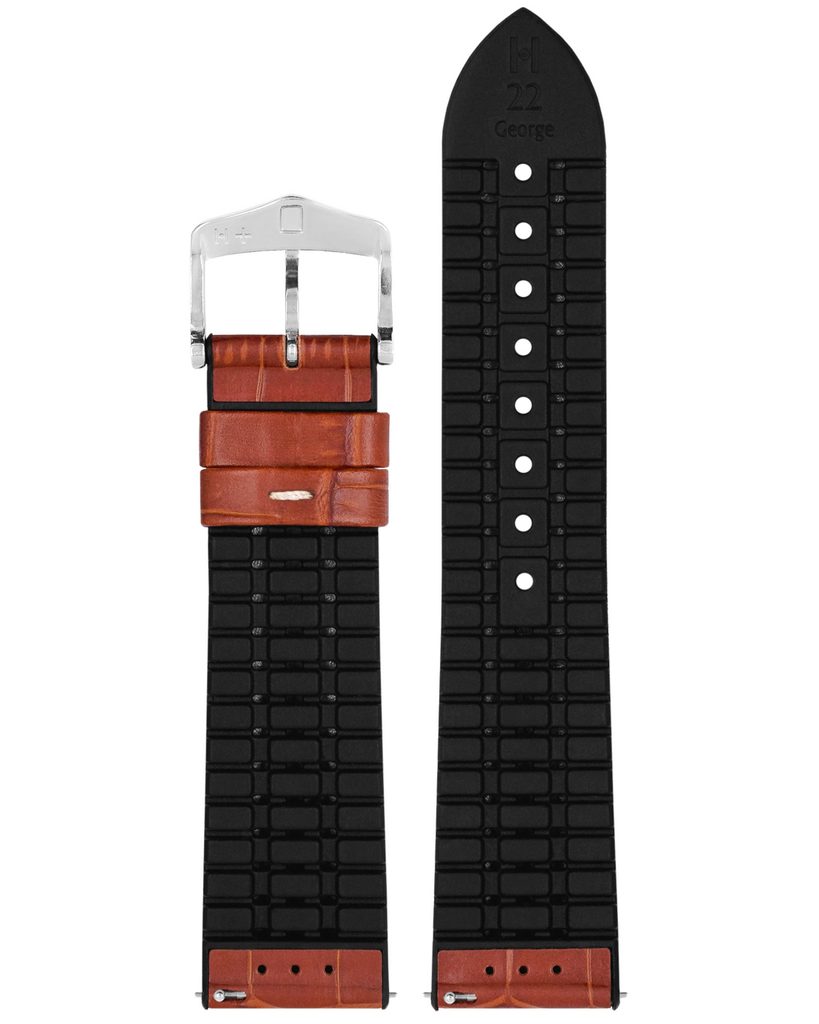 Italská teletina a kvalitní gumové jádro Premium Cautchouc s vysokou funkčností. Úžasná kombinace materiálů, která vás jen utvrdí v tom, že právě řemínek George je pro vás ten pravý. Oba materiály jsou vysoce odolné a také vám zajistí pohodlí na každém kroku.