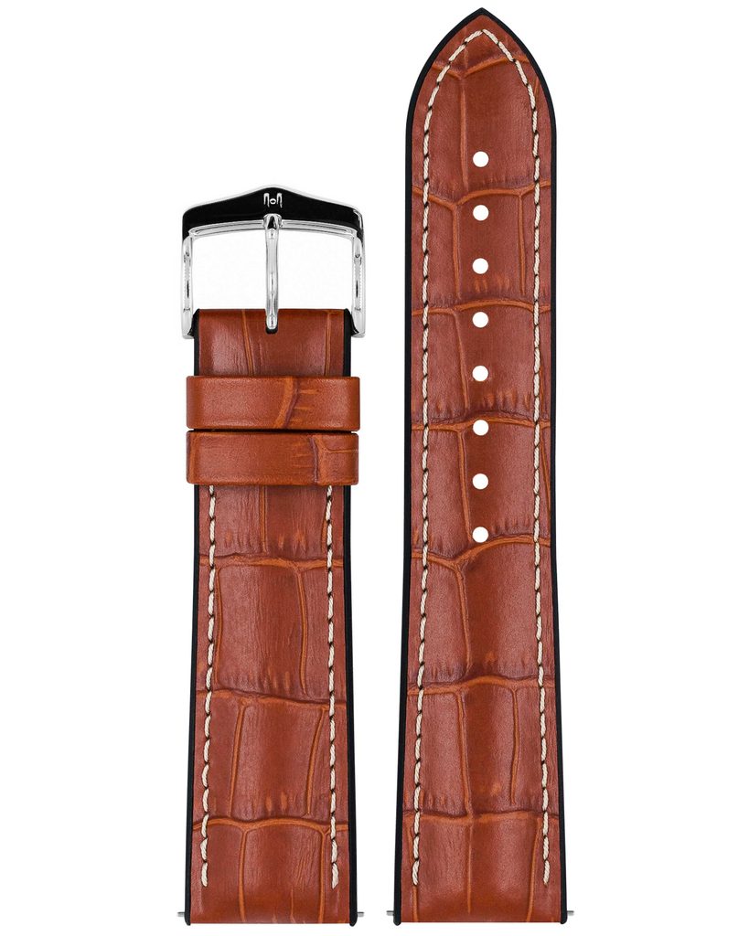 Klasika nikdy nevyjde z módy, a to samé platí také o řemínku z kolekce George, který okouzlí většinu žen i mužů. Nadčasový řemínek vás osloví svou sportovní až klasickou elegancí, stejně tak svým designem, který kombinuje realistický vzor aligátora s polomatným povrchem i kontrastním patentovým švem. Luxusní řemínek díky svému zpracování podtrhne vaše sebevědomí i osobitý styl.