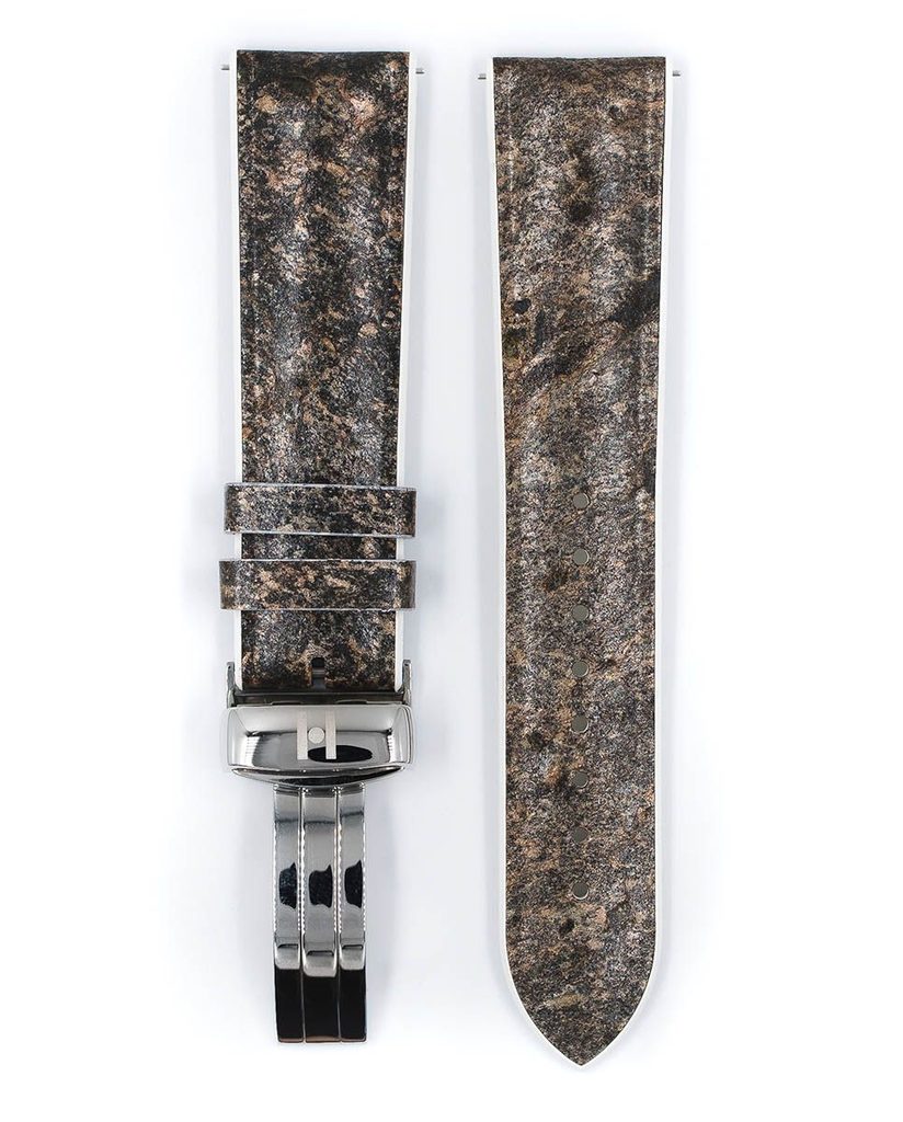 Výrazný design, robustní provedení, granitový vzor a módní zpracování. To jsou stěžejní body, které se staly inspirací pro vytvoření řemínku z kolekce Stone. Trendy vzhled pak o to víc podporuje stříbrná překlápěcí spona, která završuje velmi povedený vzhled.