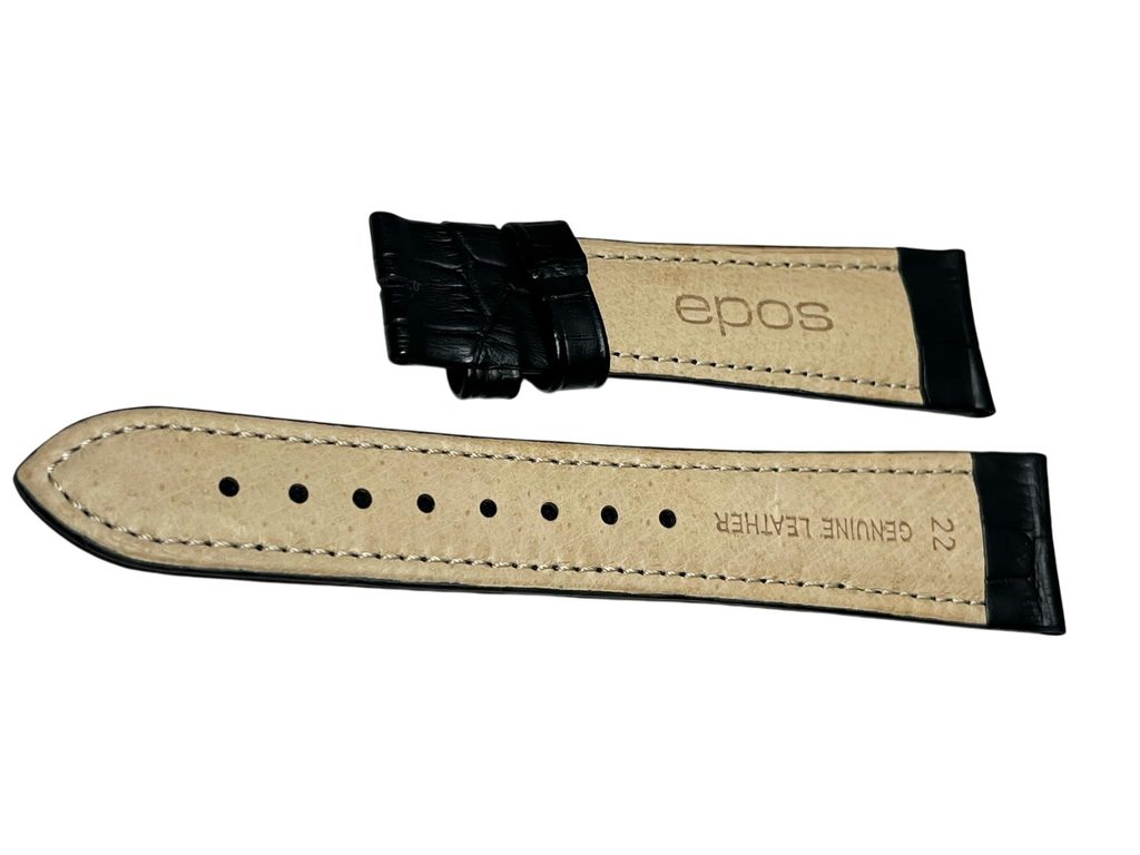 Originální kožený řemínek Epos černé barvy s krokodýlím vzorem o šířce 22 mm (šířka u spony 18 mm), bez spony.