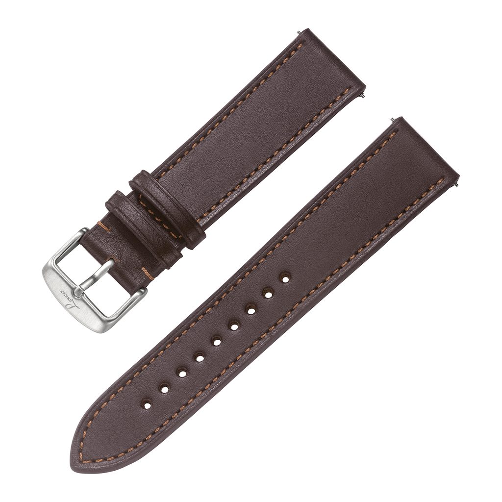 Hnědý kožený řemínek Laco "Kiel.2 Blau" je skvělou alternativou k ocelovému náramku u modelů Laco Kiel.2. Hladký povrch řemínku doplňuje prošívání ve stejném barevném tónu a díky absenci nýtů působí decentně a čistě. Trnová spona nese logo Laco.