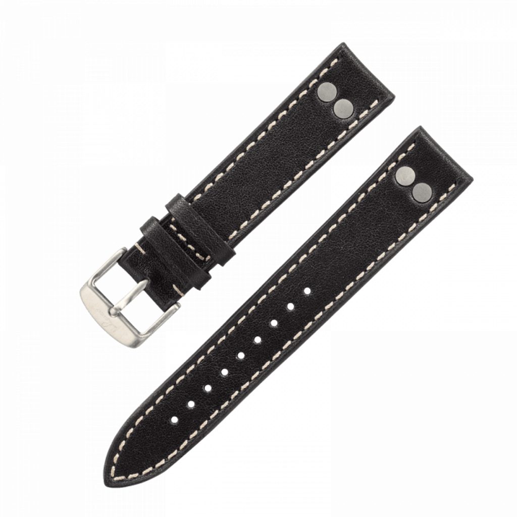Černý řemínek Laco Pilot, designově vychází z řemínků řady Flieger PRO a je vyrobený také ze stejné kůže - měkké teletiny. Skvěle podtrhne charakter všech pilotních a pozorovatelských hodinek. Je prošitý světlou nití a pro zachování typického charakteru pilotních hodinek má každá strana řemínku dva nýty. Trnová spona nese logo Laco.