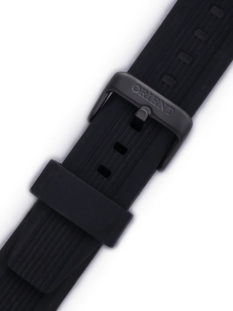 Originální silikonový řemínek Orient v černé barvě o šířce 22 mm se může pochlubit praktickou přezkovou sponou v černé barvě a nízkou náročností na údržbu. Jeho černý povrch navíc přidá hodinkám nádech elegance.