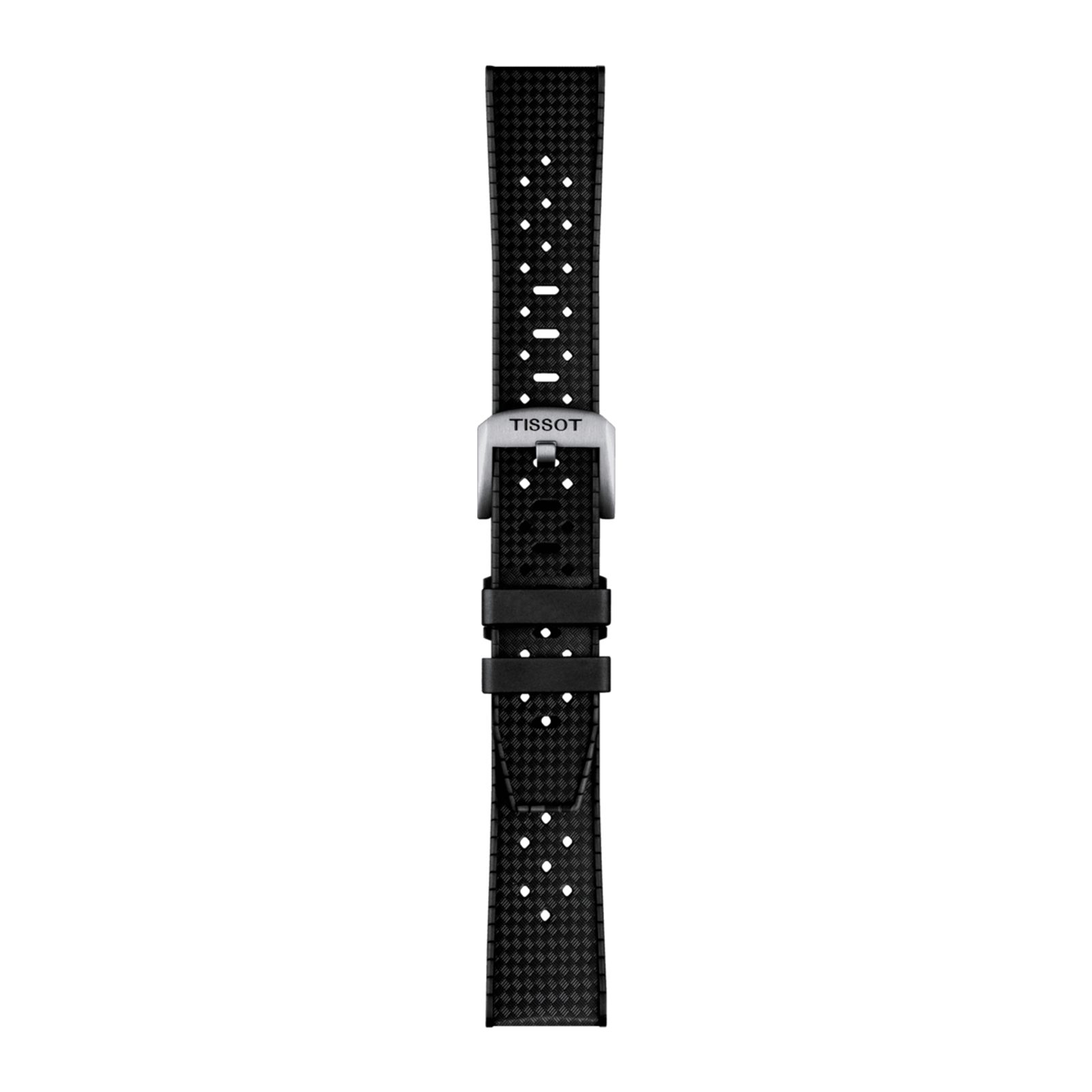 Originální černý řemínek Tissot T852.049.628 je vyroben z odolného a pružného silikonu, je vybavený snadným rychloupínacím systémem (rychlostěžejky) a klasickou trnovou sponou z nerezové oceli.