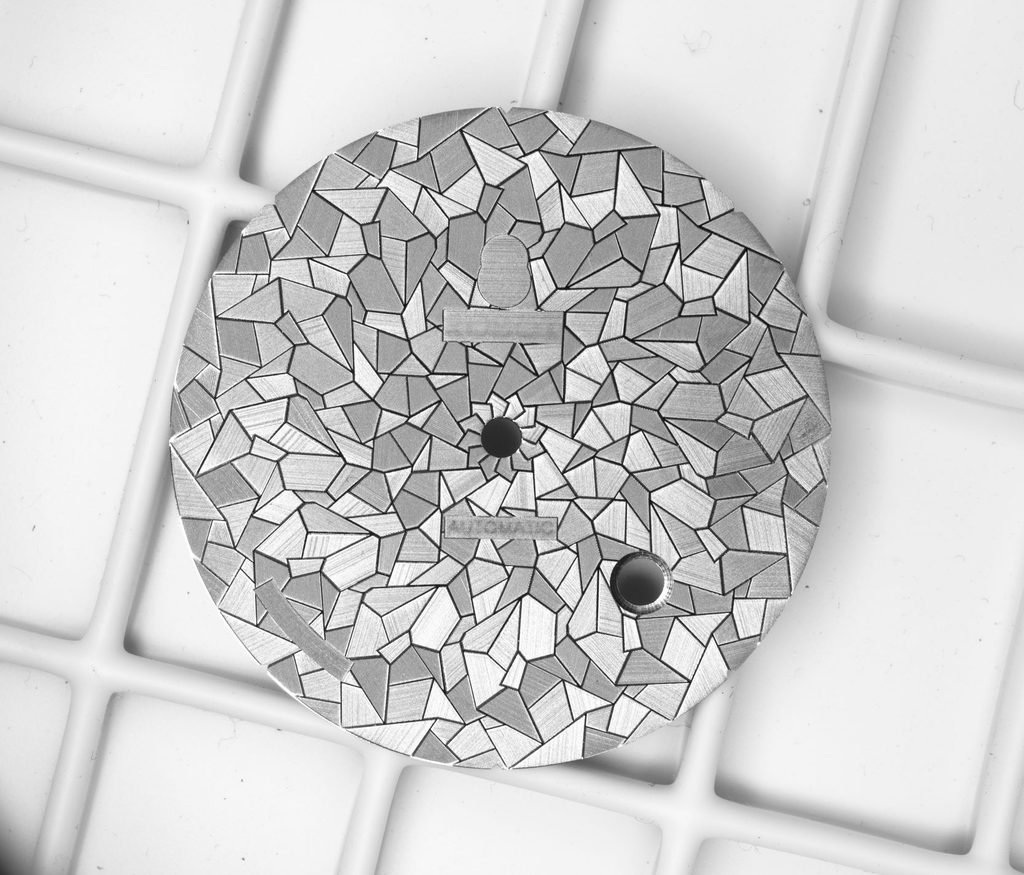 Číselník chrání sférické safírové sklíčko s vnitřním antireflexem, vyniká tak vysokou odolností proti poškrábání a skvělou čitelností na přímém světle. Dýnko hodinek poskytuje průhled na zdobený strojek a odhaluje také rotor, na němž je název značky zobrazen pomocí vlajkové abecedy.