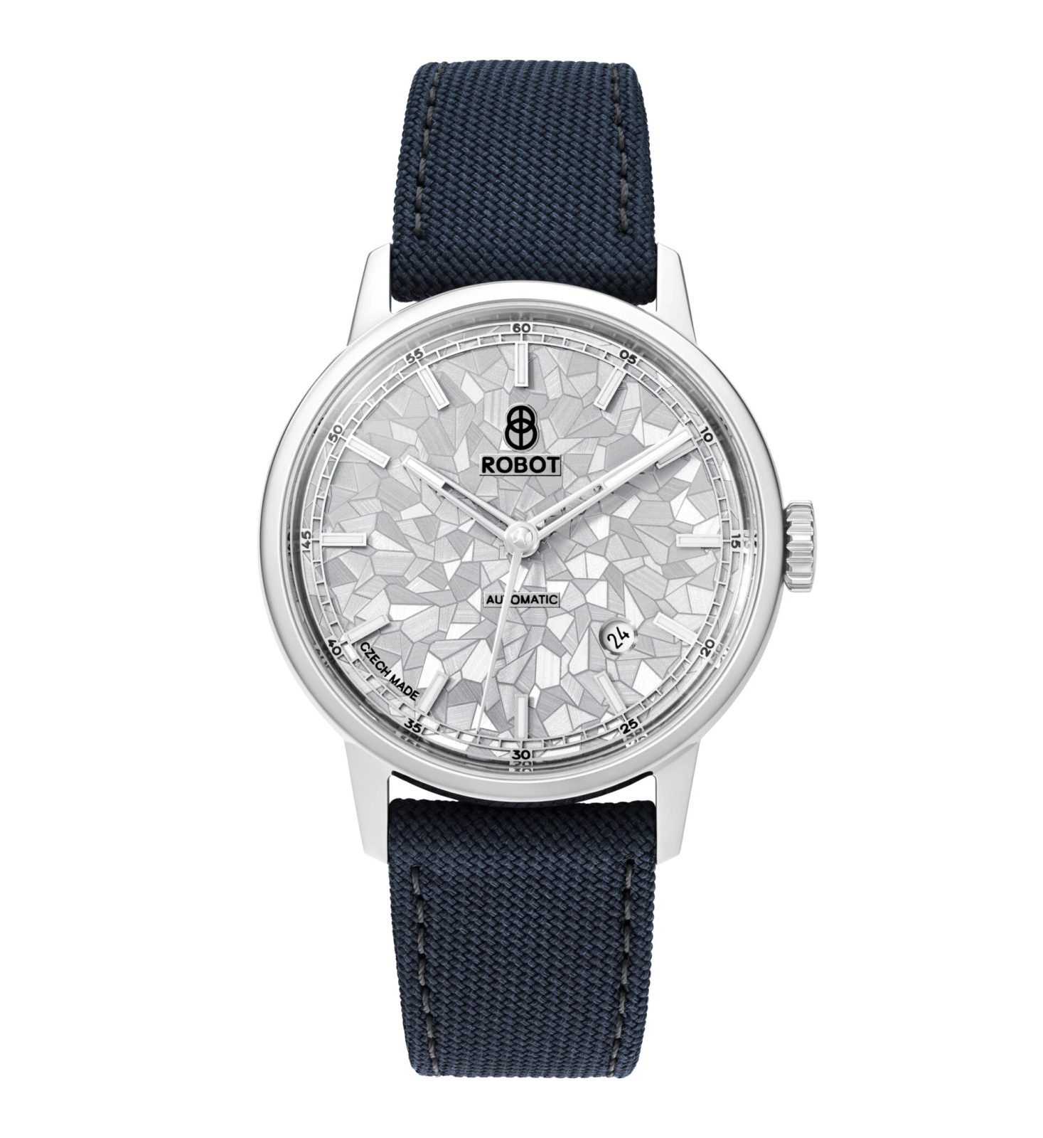 Robot Spectra Silver přináší jedinečný design inspirovaný světelnou hrou. Nepřehlédnutelným a hlavním prvkem hodinek je výrazný, jemně broušený reliéfní číselník, který vytváří fascinující a proměnlivé odlesky, v závislosti na dopadajícím světle. Každý pohled na hodinky je tak opravdovou podívanou.