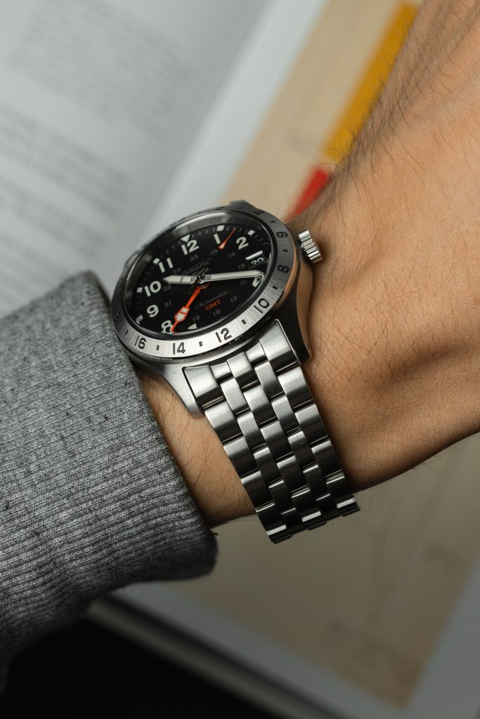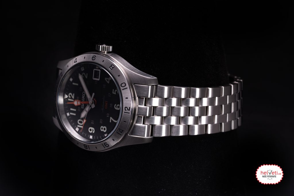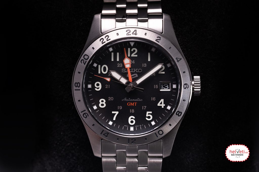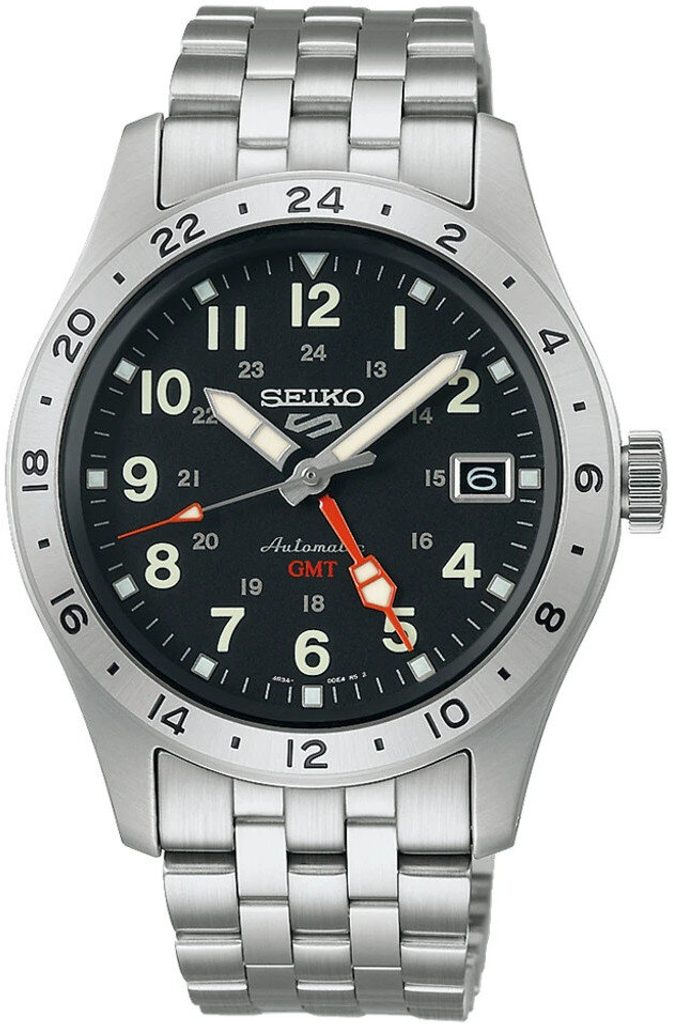 Výbornou přehledností vynikající hodinky Seiko SSK023K1 vychází z oblíbené řady Seiko 5 Sports a zachovávají několik detailů, které jsou pro tuto řadu typické. Mechanický strojek s automatickým nátahem, voděodolnost, pouzdro se zvýšenou odolností proti nárazům a zobrazení data. Tento výčet nově doplňuje funkce GMT, které je uzpůsobena neotočná 24hodinová luneta a díky níž na číselníku přibyla výrazná GMT ručka. Korunka sice není charakteristicky skrytá na úrovni 4. hodiny, ale díky její plochosti nijak nepřekáží a pohodlně se s ní manipuluje. Ocelové pouzdro hodinek doplňuje ocelový pětiřadý náramek.