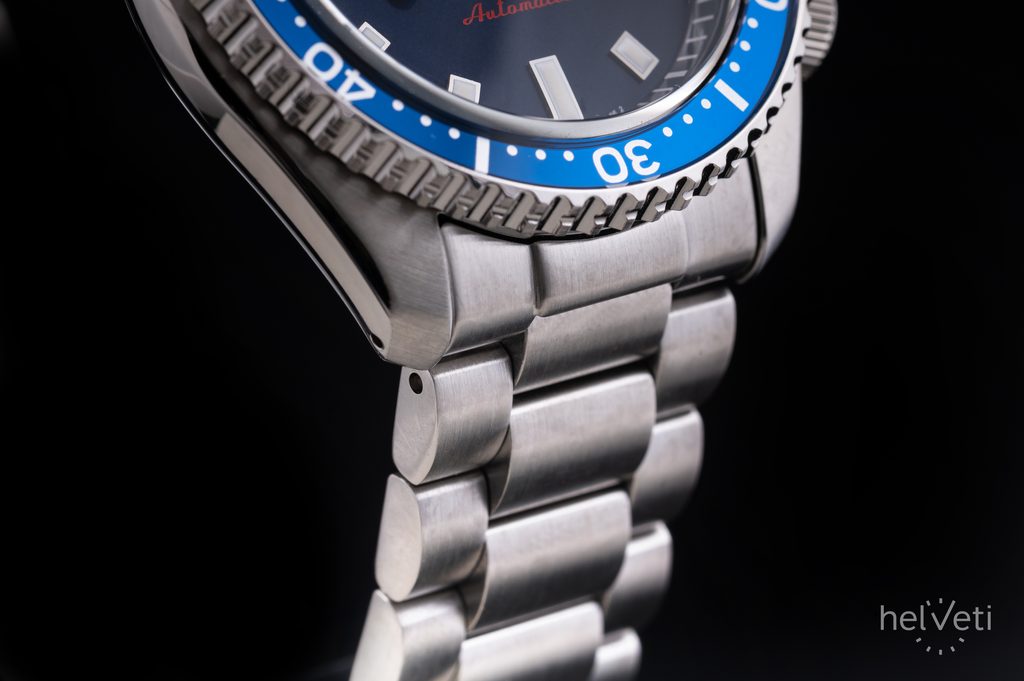 Voděodolnost tohoto modelu je 100 m, s hodinkami tak můžete bez problémů plavat. Díky průměru pouzdra 42,5 mm, výška hodinek 13,9 mm a lug-to-lug je 46 mm.