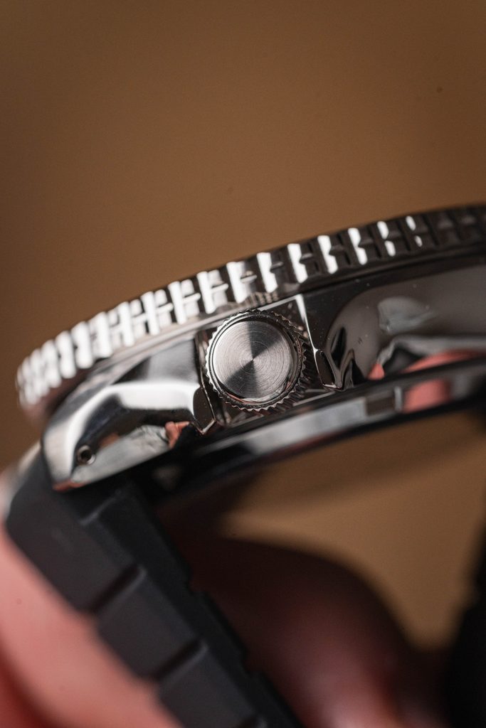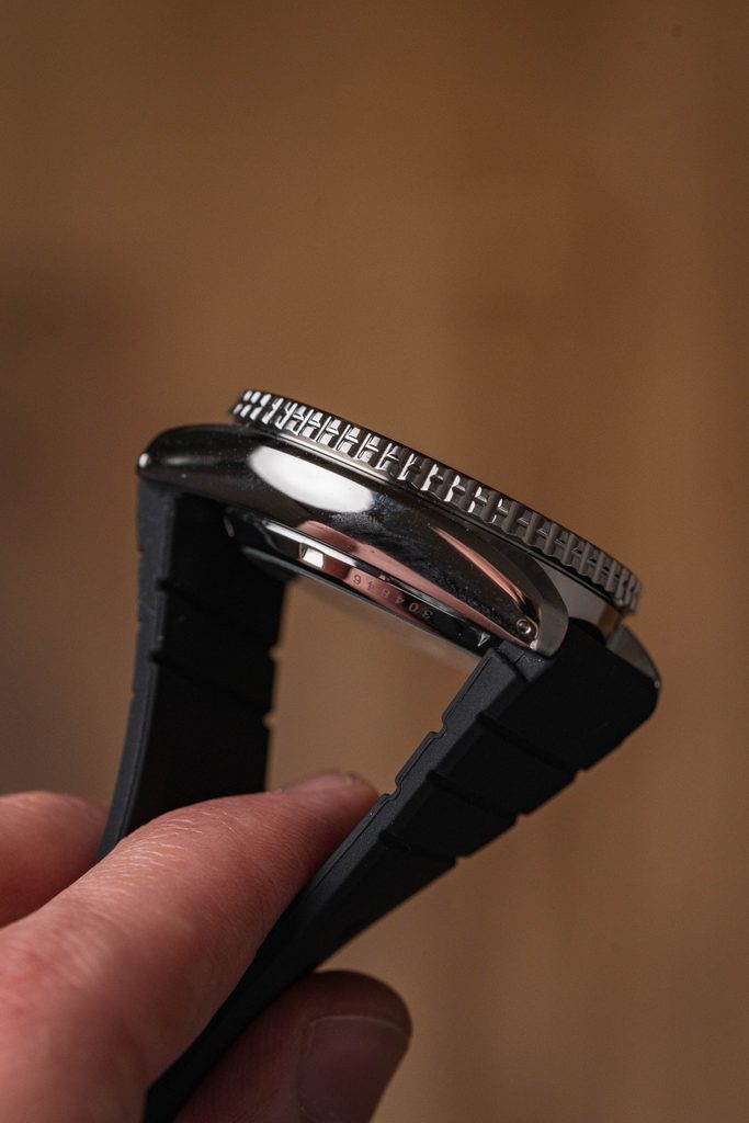 Voděodolnost tohoto modelu je 100 m, s hodinkami tak můžete bez problémů plavat. Díky průměru pouzdra 42,5 mm, výška hodinek 13,9 mm a lug-to-lug je 46 mm.