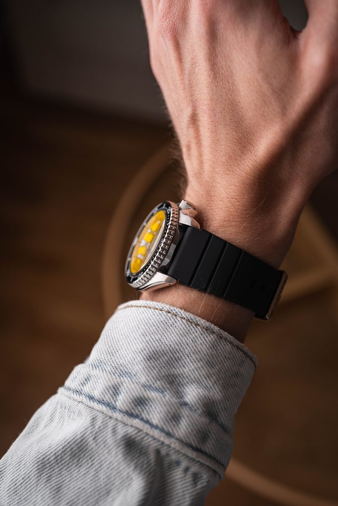 Ocelové pouzdro doplňuje na ruce velmi příjemný silikonový řemínek, který je skvělou volbou pro denní nošení i sportovní aktivity. Předností hodinek je skvělá přehlednost daná použitím výrazných indexů a ruček, které jsou navíc pro lepší čitelnost za zhoršených světelných podmínek opatřené vrstvou luminiscence.
