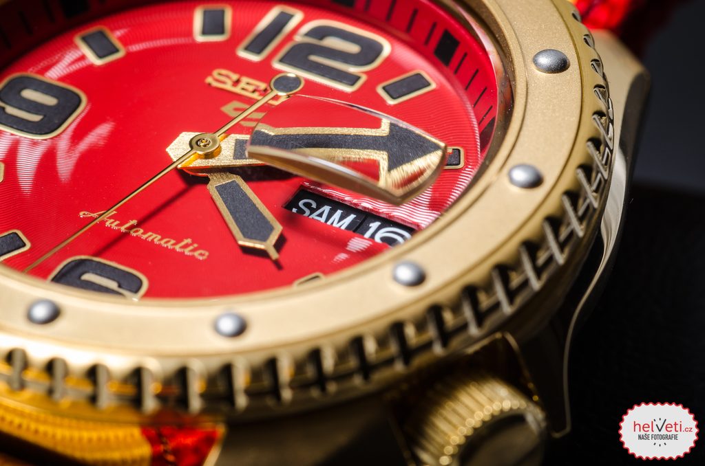 Model Seiko SRPF24K1 je kompletně stvořený podle vybraného hrdiny - podoba číselníku odráží sílu Zangiefa, vzor na číselníku odkazuje na jeho bojovou specialtu Cyclone Lariat. V lunetě každý fanoušek ihned pozná opasek, stejně jako v nato řemínku ikonická potítka. Červený číselník, s vyobrazením dne a data na pozici třetí hodiny, chrání tvrzené minerální sklíčko Hardlex. Ocelové pouzdro hodinek je opatřeno speciální PVD úpravou povrchu v barvě mosazi, doplňuje jej textilní nato řemínek. Hodinky pohání mechanický strojek 4R36 s automatickým nátahem a rezervou chodu kolem 41 hodin. Samozřejmostí je funkce zastavení vteřinové ručky při nařizování času a možnost nátahu korunkou. Strojek je možné pozorovat průhledným, speciálně značeným dýnkem. Předností hodinek je skvělá přehlednost daná použitím výrazných indexů a ruček. Vodotěsnost tohoto modelu je 100 m, s hodinkami tak můžete bez problémů plavat. Díky průměru pouzdra 42,5 mm jsou řazeny mezi středně velké hodinky, vhodné pro většinu pánských zápěstí.