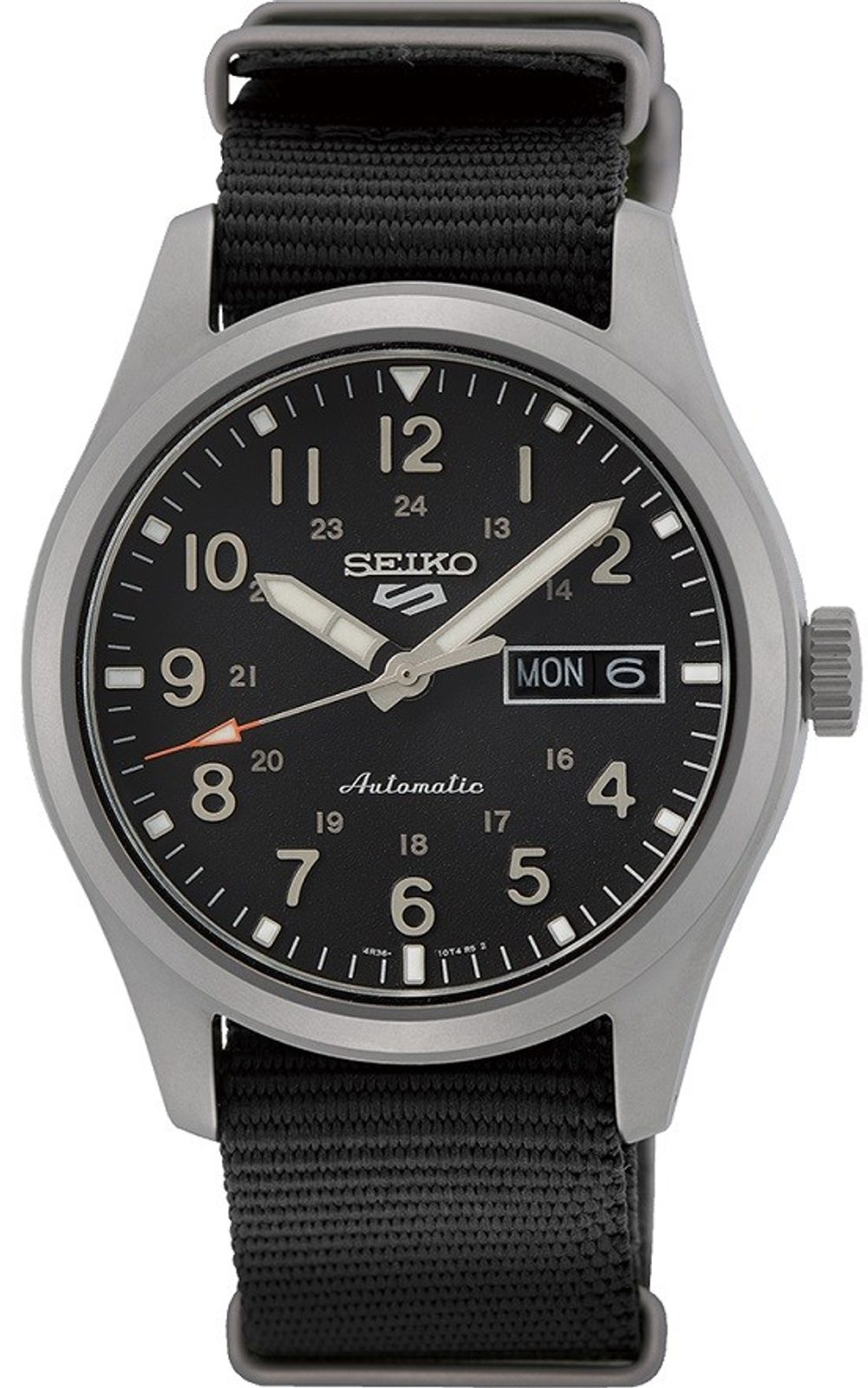 Výbornou přehledností vynikající hodinky Seiko SRPG37K1 vychází z oblíbené řady Seiko 5 Sports a zachovávají 4 z 5 detailů, které jsou pro tuto řadu typické. Mechanický strojek s automatickým nátahem, voděodolnost, pouzdro se zvýšenou odolností proti nárazům a zobrazení data a dne v týdnu v jednom okně oceníte při denním nošení i během sportování. Korunka sice není charakteristicky skrytá na úrovni 4. hodiny, ale díky její plochosti nijak nepřekáží a pohodlně se s ní manipuluje. Ocelové pouzdro hodinek doplňuje textilní nato řemínek černé barvy.