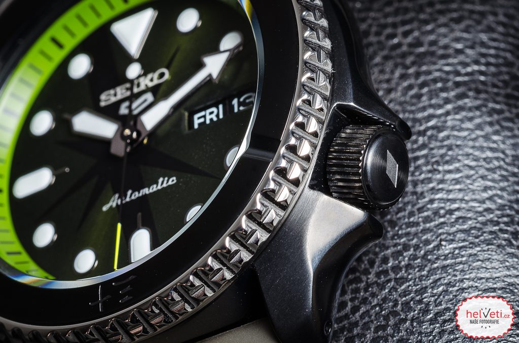 Tmavý číselník, s vyobrazením dne a data na pozici třetí hodiny, chrání tvrzené minerální sklíčko Hardlex. Ocelové pouzdro hodinek s černou PVD úpravou povrchu, doplňuje silikonový řemínek. Hodinky pohání mechanický strojek 4R36 s automatickým nátahem a rezervou chodu kolem 41 hodin. Samozřejmostí je funkce zastavení vteřinové ručky při nařizování času a možnost nátahu korunkou. Strojek je možné pozorovat průhledným, speciálně značeným dýnkem. Předností hodinek je skvělá přehlednost daná použitím výrazných indexů a ruček. Vodotěsnost tohoto modelu je 100 m, s hodinkami tak můžete bez problémů plavat. Díky průměru pouzdra 42,5 mm jsou řazeny mezi středně velké hodinky, vhodné pro většinu pánských zápěstí.
