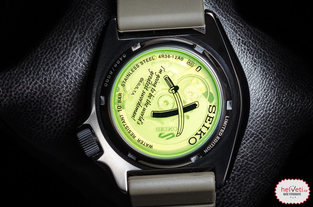 Model Seiko SRPH67K1 je kompletně stvořený podle vybraného hrdiny - ve vzoru číselníku se ukrývá síla Zorova Haki. Černé pouzdro představuje sílu Haki ukrytou v meči a symboly na lunetě jsou symboly tří hrdinových mečů. Korunka nese symbol odkazující na Zorovo umění boje se třemi meči. Dýnko je zdobeno grafikou inspirovanou mečem Wado Ichimonji a motem postavy "I'm going to be the world's greatest swordsman!"