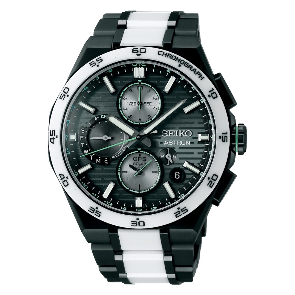 Hodinky na první pohled zaujmou svým výrazným designem, ostrými liniemi, černým povrchem s bílými a zelenými akcenty a precizním zpracováním pouzdra, náramku i číselníku. Ten nově zdobí horizontální vzor s přerušovanými liniemi, evokujícími pohyb světla vysokou rychlostí.