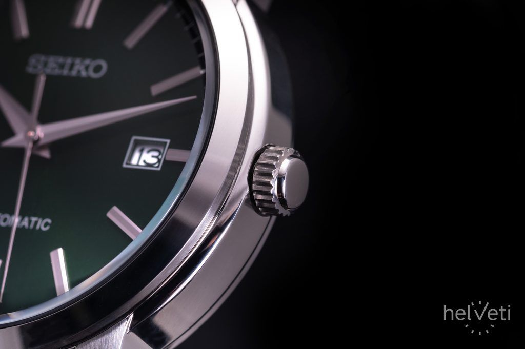 Ocelové pouzdro hodinek Seiko SRPH89K1 je doplněno pětičlánkovým náramkem ze stejného materiálu. Zelený číselník, opatřený hůlkovými indexy na pozicích hodin a minutovou stupnicí na svém obvodu, je chráněn sklíčkem Hardlex - tvrzeným minerálním sklíčkem. Pro udržení čistoty číselníku a klasického vzezření jsou použity elegantní dauphine ručky a hodinky jsou vybaveny pouze funkcí data na pozici třetí hodiny. Srdcem hodinek je mechanický strojek s automatickým nátahem 4R35, s rezervou chodu až 41 hodin.