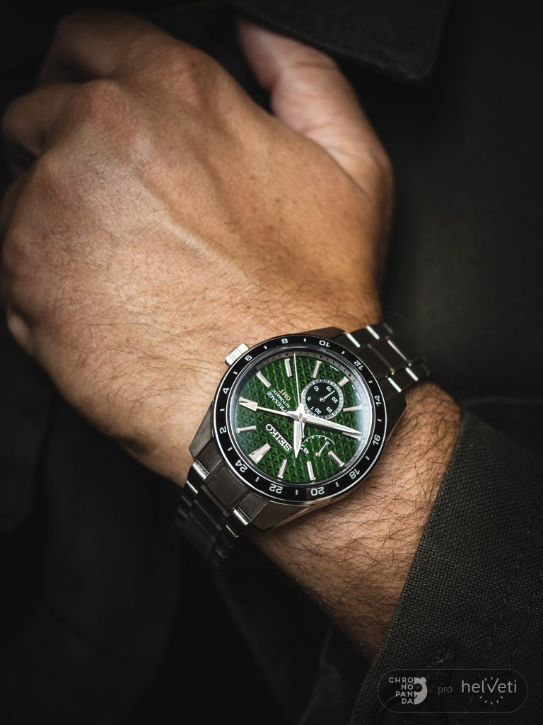 Ocelové pouzdro hodinek Seiko SPB219J1 je doplněno ocelovým náramkem, umocňujícím jejich univerzálnost. Na zeleném texturovaném číselníku vynikají ostře zakončené ručky a kontrastní plastické indexy na pozicích hodin. Číselník je chráněn safírovým sklíčkem s vnitřním antireflexem. Hodinky jsou vybaveny zobrazením data na pozici 6. hodiny, rezervy chodu u 9. hodiny a GMT ručkou pro možnost zobrazení času v dalším vybraném časovém pásmu. Vzhledem k funkci GMT jsou hodinky vybaveny neotočnou lunetou s hodinovým značením. Pro lepší čitelnost při zhoršených světelných podmínkách jsou ručky hodinek vyplněny luminiscencí. Srdcem hodinek je mechanický strojek s automatickým nátahem 6R64, s rezervou chodu kolem 45 hodin a frekvencí 28,800 polokmitů za hodinu. Vodotěsnost tohoto modelu je 100 m, hodinky snesou styk s vodou při povrchovém plavání. Průměr pouzdra je 42,2 mm.