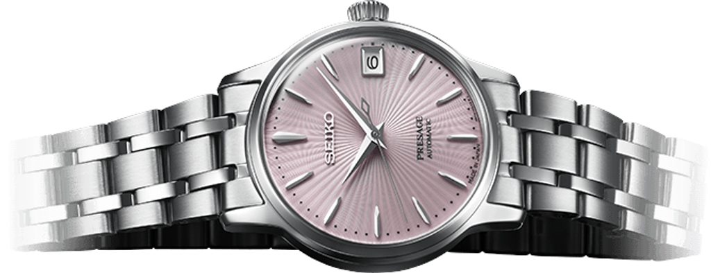 Kolekce dámských hodinek z řady "Cocktail Time" zahrnuje modely, z nichž každý je inspirován jiným koktejlem s vlastním barevným vzorem. Všechny verze jsou provedeny v typickém designu s jemným vzorem na ciferníku, který celé řadě zajistil velkou popularitu. Předobrazem číselníku hodinek Seiko SRP841J1 je svěží barva koktejlu Cosmopolitan.