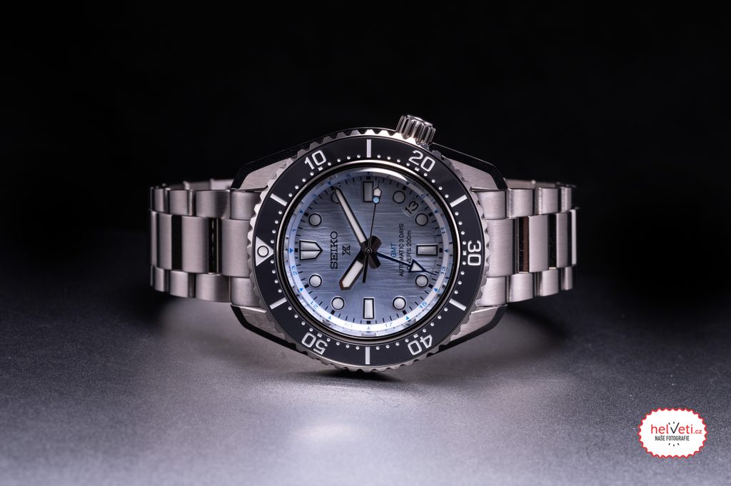 Seiko SPB385J1 1968 Diver’s Modern Re-interpretation GMT Limited Edition přichází jako limitovaná edice o 4000 ks z kolekce Save the Ocean, oslavující 110. výročí od vydání prvních náramkových hodinek Seiko a prvních japonských náramkových hodinek. Model se vyznačuje složitě texturovaným ledově modrým číselníkem zachycujícím sílu polárních ledovců, které formují krajinu a mořské scenérie Arktidy a Antarktidy, kde se v 60. a 70. letech 20. století utvářela pověst společnosti Seiko jako spolehlivých a odolných hodinek. Hodinky Seiko doprovázely výzkumníky na výpravách na severní a jižní pól. Tato speciální edice je zařazena