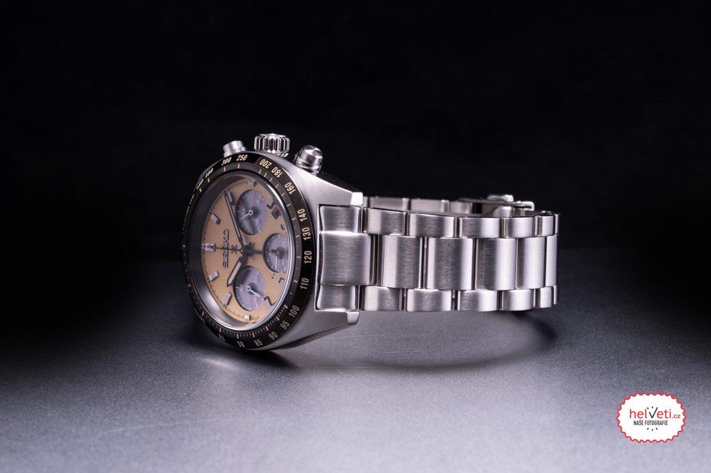 Pouzdro i náramek hodinek Seiko SSC817P1 jsou vyrobené z nerezové oceli s broušeným povrchem. Béžový číselník s kontrastními subciferníky (tzv. panda dial) je vybaven funkcí ukazatele data a stopek. Stopky je možné ovládat postranními tlačítky - vrchní stopky spouští a zastavuje, spodní nuluje naměřené hodnoty. Lze s nimi měřit až hodinové intervaly s přesností na 1/5 sekundy. Hodinky jsou vedle toho vybaveny 24hodinovým ukazatelm času na pozici 3. hodiny. Číselník je chráněn safírovým sklíčkem s vysokou odolností proti poškrábání. Sportovní nádech je podpořen tachymetrickou stupnicí na lunetě, díky níž lze, spolu za použití stopek, změřit rychlost pohybujícícho se objektu. Předností modelu je solární pohon, při němž je akumulátor hodinek napájen pomocí přírodního a umělého světla, zároveň díky jeho vyšší životnosti odpadá potřeba pravidelné 2 až 3leté výměny. Vodotěsnost tohoto modelu je 100 m, s hodinkami tak můžete bez obav plavat.