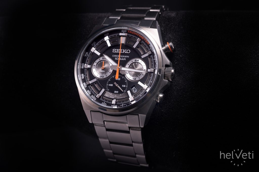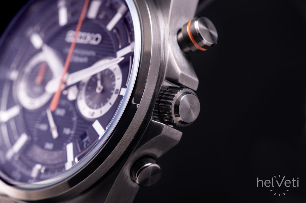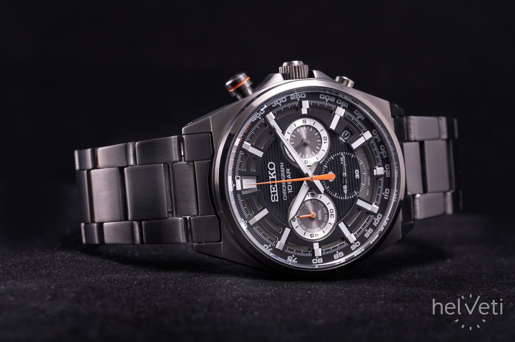 Výrazným prvkem hodinek Seiko SSB399P1 je právě strukturovaný číselník. Dobře přehledné modré ručky jsou, podobně jako indexy, opatřeny nánosem luminiscenční vrstvy, usnadňující čitelnost při zhoršených světelných podmínkách. Číselník chrání tvrzené minerální sklíčko Hardlex. Pouzdro i náramek jsou vyrobené z nerezové oceli s černou úpravou povrchu, celoocelové provedení hodinek má praktický důvod - odolnost a univerzálnost. Vodotěsnost tohoto modelu je 100 m, hodinky tak snesou občasné povrchové plavání a sprchování. Nechybí ani ukazatel data na pozici mezi 4. a 5. hodinou. Průměr pouzdra činí 41 mm.
