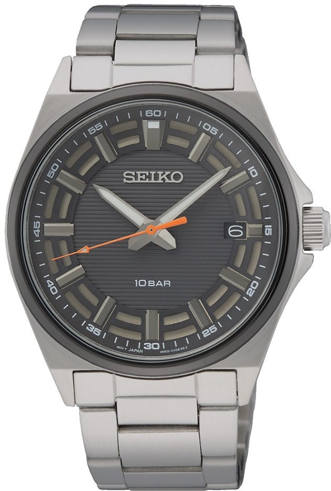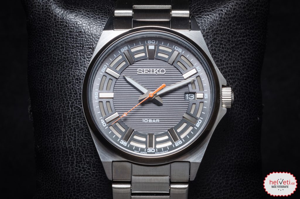 Hodinky Seiko SUR507P1 pohání bateriový strojek s funkcí ukazatele data, která je vyvedený na pozici 3. hodiny.