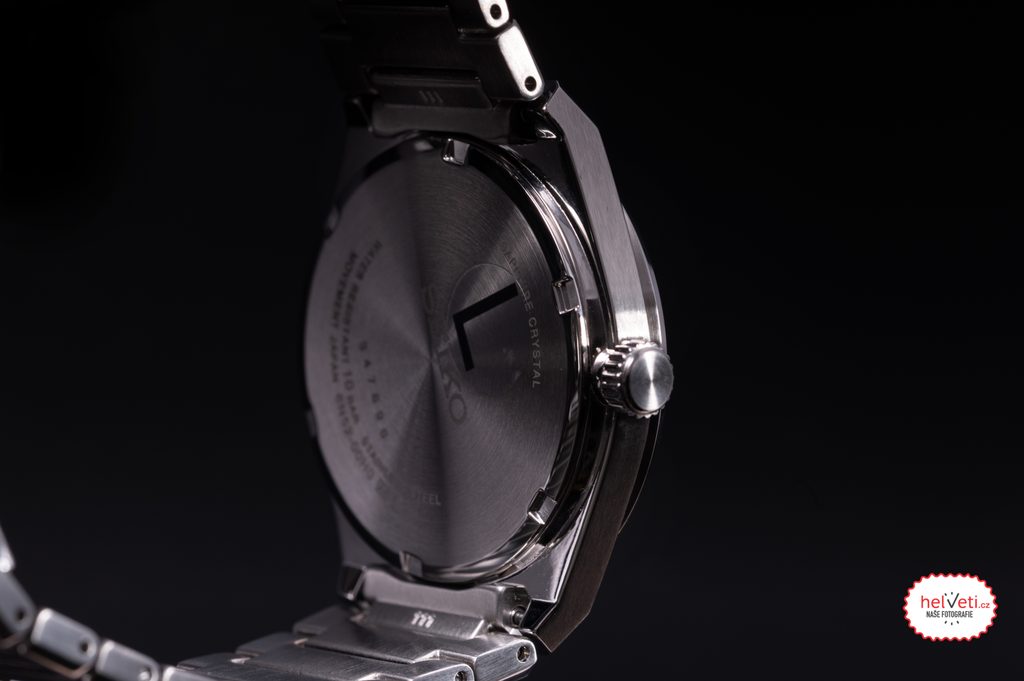 Na hodinkách na první pohled zaujme čistý a účelný design tvořený soudkovitým pouzdrem, v němž je usazen černý strukturovaný číselník se stříbrnými ručkami a plastickými indexy na hodinových pozicích. Chráněn je safírovým sklíčkem. Pouzdro hodinek je vyrobeno z ušlechtilé oceli a vhodně doplněno ocelovým náramkem, skládajícím se z drobnějších dílků. Díky drobnějším dílkům jsou hodinky na zápěstí velmi pohodlné.