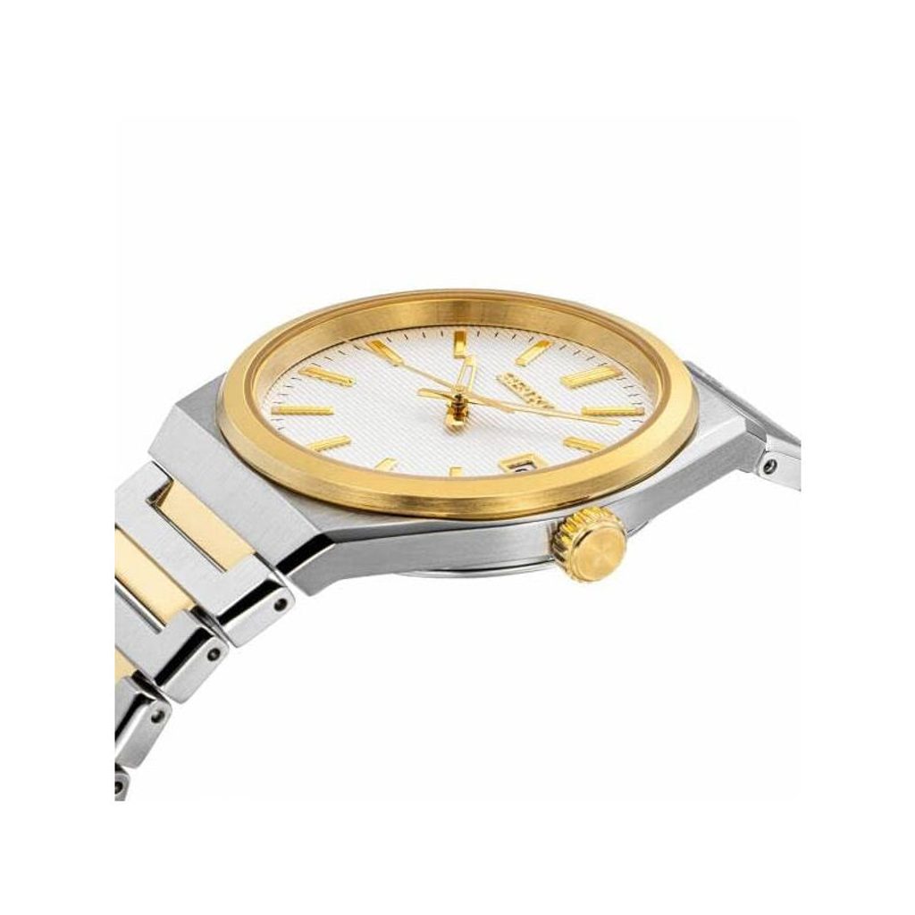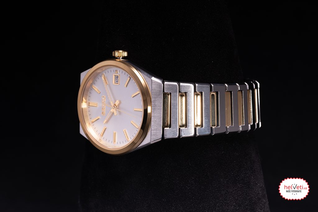 Na hodinkách na první pohled zaujme čistý a účelný design tvořený soudkovitým pouzdrem, v němž je usazen bílý strukturovaný číselník se zlatými ručkami a plastickými indexy na hodinových pozicích. Chráněn je safírovým sklíčkem. Pouzdro hodinek je vyrobeno z ušlechtilé oceli v provedení bicolor a vhodně doplněno stejně barevným ocelovým náramkem, skládajícím se z drobnějších dílků. Díky drobnějším dílkům jsou hodinky na zápěstí velmi pohodlné.