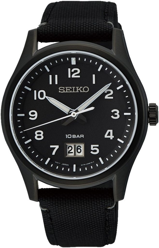 Seiko SUR571P1 jsou velice povedeným modelem z řady Seiko Quartz. Ocelové pouzdro hodinek s černou IP úpravou povrchu doplňuje černý textilní řemínek podšitý kůží. Hodinky Seiko SUR571P1 nabízí klasický a léty prověřený design, sestávající z jednoduchého tmavého číselníku, doplněného výraznými číslicemi na hodinových pozicích a ručkami s nánosem luminiscence. Z funkcí potěší ukazatel data v provedení "big date", umístěný na pozici šesté hodiny.