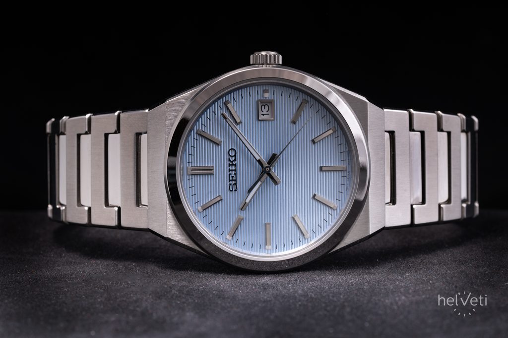Na hodinkách na první pohled zaujme čistý a účelný design tvořený soudkovitým pouzdrem s ostřejšími liniemi, v němž je usazen světle modrý strukturovaný číselník se stříbrnými ručkami a aplikovanými indexy na hodinových pozicích. Chráněn je safírovým sklíčkem. Pouzdro hodinek je vyrobeno z ušlechtilé oceli a vhodně doplněno ocelovým náramkem, skládajícím se z drobnějších dílků, díky nimž jsou hodinky na zápěstí velmi pohodlné.