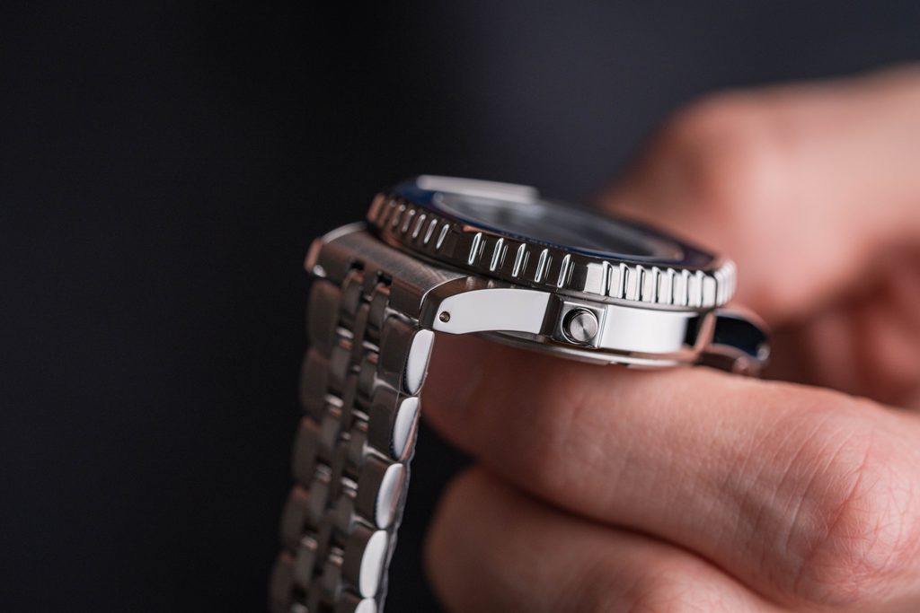 Pouzdro hodinek i retro působící pětiřadý náramek z drobnějších dílků jsou vyrobené oceli. Nejvýraznějším prvkem hodinek je právě dvoubarevná luneta s popisy funkcí, která dodává modelu sportovní nádech. Navíc neztratila nic ze své funkce. Otáčením lunety v libovolném směru se nastaví požadovaný režim do pozice 12. hodiny a ten je následně ovládán tlačítky na bocích pouzdra.
