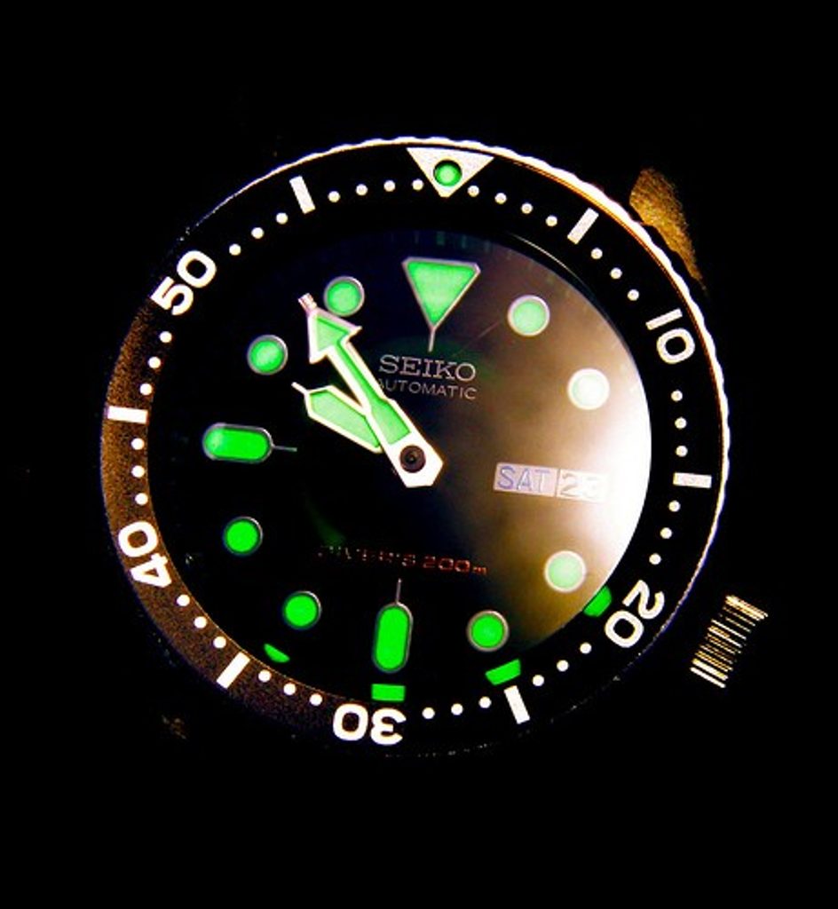 V noci i v zakalené vodě oceníte výrazné ručičky a indexy s výbornou luminiscencí Lumibrite, díky níž nebude přečíst čas a odhadnout dobu ponoru žádný problém.