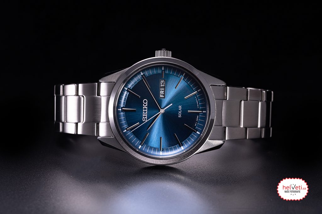 Modrý ciferník se slunečním brusem a s kontrastními stříbrnými ručkami a indexy na hodinových pozicích je chráněn safírovým sklíčkem, které je vysoce odolné proti poškrábání. Zajímavostí je provedení minutové stupnice, která vytváří dojem hloubky ciferníku. Ocelové pouzdro hodinek je doplněno ocelovým náramkem, tato kombinace má i praktické zdůvodnění - vysokou odolnost. Vodotěsnost tohoto modelu je 100 m, zvládne tak povrchové plavání.