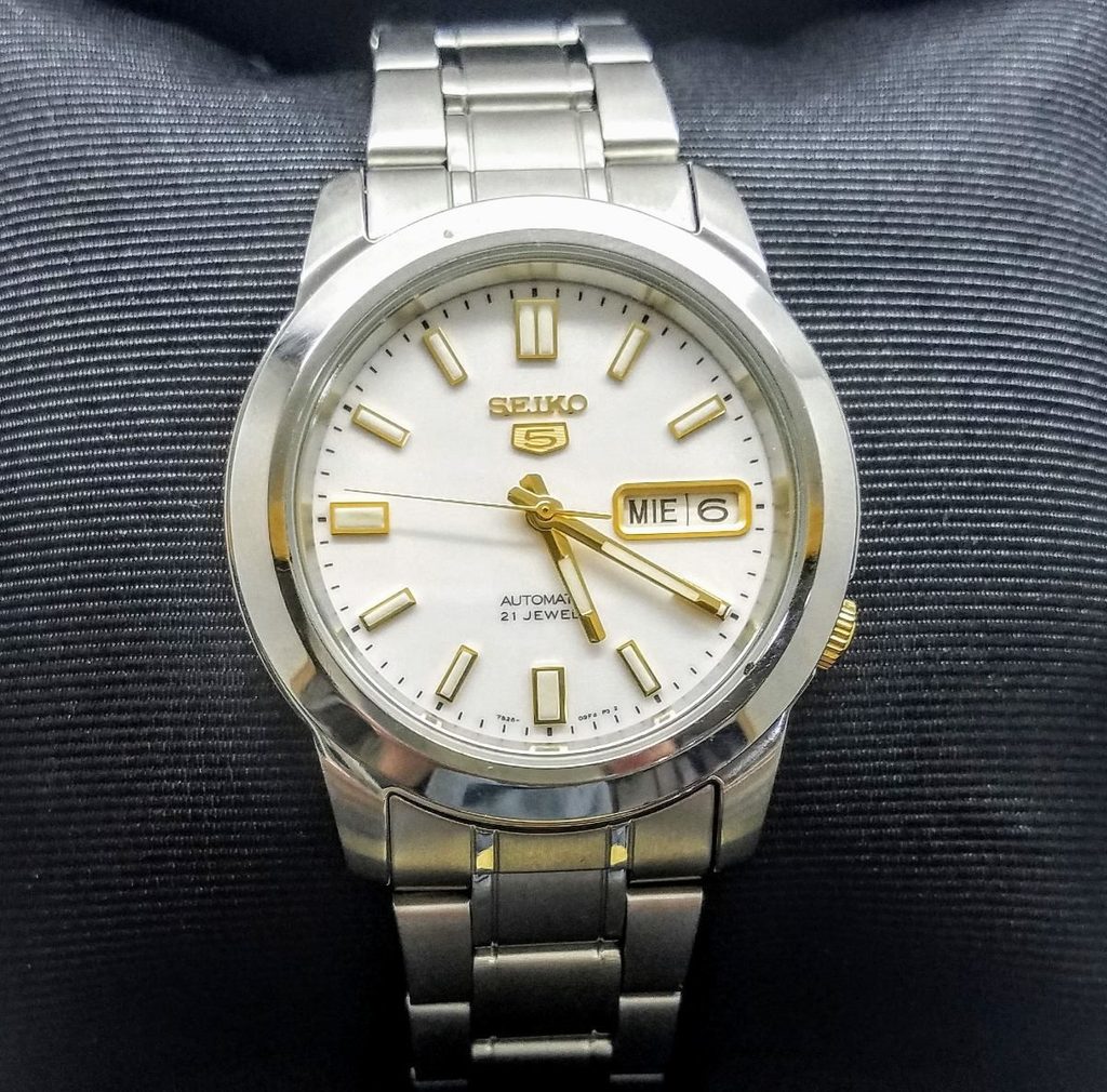 Model Seiko SNKK07K1 pohání mechanický strojek 7S26 s automatickým nátahem a rezervou chodu až 41 hodin. Působivý bílý číselník, s vyobrazením dne a data na pozici třetí hodiny, chrání tvrzené minerální sklíčko Hardlex. Ocelové pouzdro v kombinaci s ocelovým náramkem přidává hodinkám na univerzálnosti a praktičnosti. Předností hodinek je skvělá přehlednost daná použitím výrazných indexů a ruček. Ručky a indexy na hodinových pozicích jsou navíc opatřeny vrstvou luminiscence. Vodotěsnost tohoto modelu je 30 m, hodinky tak snesou kontakt s vodou při mytí rukou a dešti. Díky průměru pouzdra 38 mm jsou řazeny mezi menší hodinky, které mohou být vhodné nejen pro pány, ale i dámy.