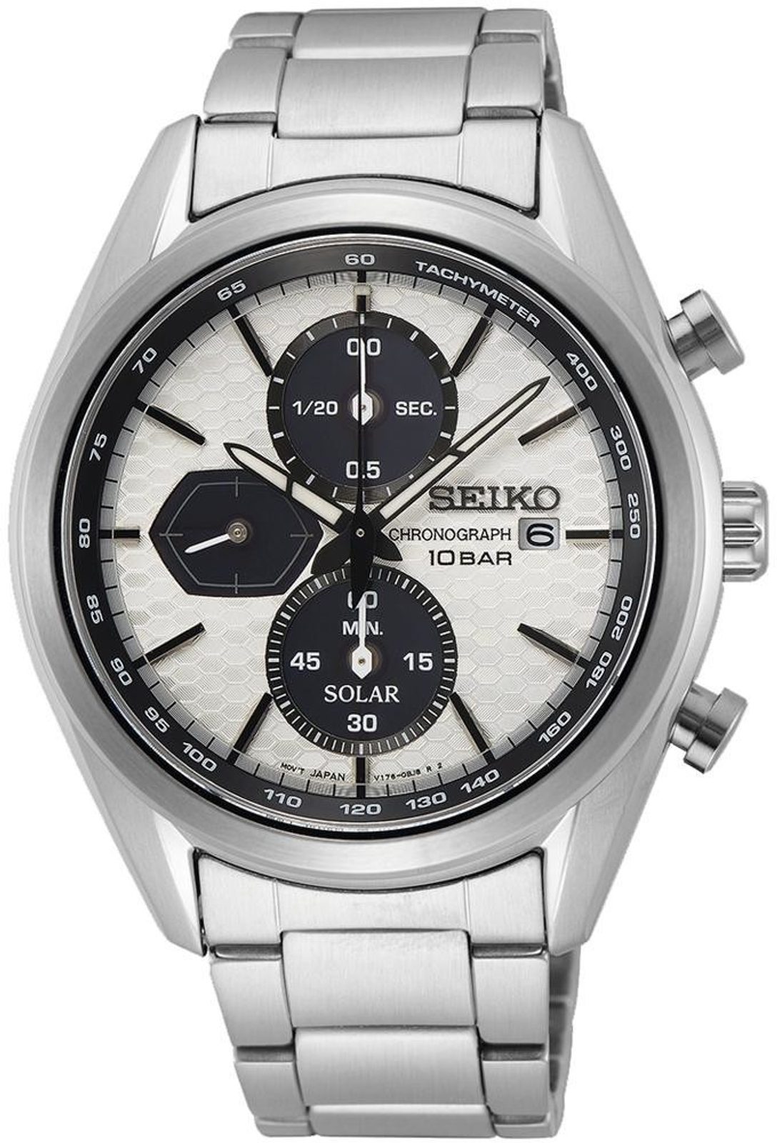 Pouzdro i náramek hodinek Seiko SSC769P1 jsou vyrobeny z nerezové oceli s broušeným povrchem doplněným lesklými prvky. Bílý strukturovaný číselník s černými subciferníky (tzv. panda dial) je vybaven funkcí ukazatele data a stopek, jejichž chod zobrazují dva přehledné subciferníky - čítač minut na pozici šesté hodiny a 1/20 vteřiny na pozici 12. hodiny. Stopky je možné ovládat postranními tlačítky - vrchní stopky spouští a zastavuje, spodní nuluje naměřené hodnoty. Číselník je chráněn safírovým sklíčkem které je vsoce odolné proti poškrábání. Sportovní nádech je celkových linií pouzdra podpořen tachymetrickou stupnicí lemující číselník, díky níž lze, spolu za použití stopek, změřit rychlost pohybujícícho se objektu. Předností modelu je solární pohon, při němž je akumulátor hodinek napájen pomocí přírodního a umělého světla, zároveň díky jeho vyšší životnosti odpadá potřeba pravidelné 2 až 3leté výměny. Vodotěsnost tohoto modelu je 100 m, s hodinkami se tak můžete bez obav koupat.
