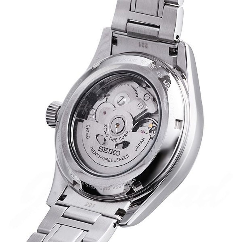 Pánské náramkové hodinky Seiko. Hodinky jsou určeny pro běžné nošení, ale i do společnosti. Model disponuje automatickým pohonem. Hodinky jsou vyrobeny v celoocelovém provedení. Analogový ciferník černé barvy chrání safírové sklíčko. Z funkcí hodinky nabízí datum. Vodotěsnost tohoto modelu je 100M (určeno pro vodní sporty).