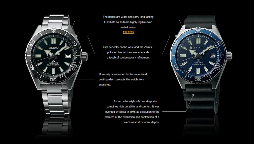 Hodinky se od své předlohy liší vylepšením funkcí - například plněním norem pro potápěčské hodinky, dále například širším pouzdrem, zachovávajícím proporce modelu z roku 1965, většími ručkami s nánosem luminiscence Lumibrite, vodotěsností 200 m a použitím safírového sklíčka s antireflexní vrstvou.