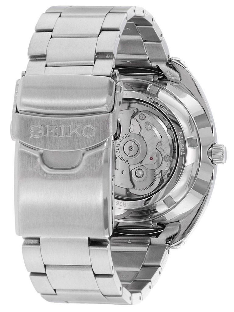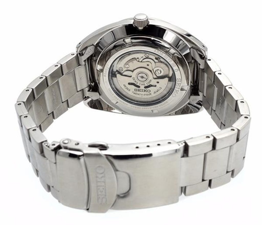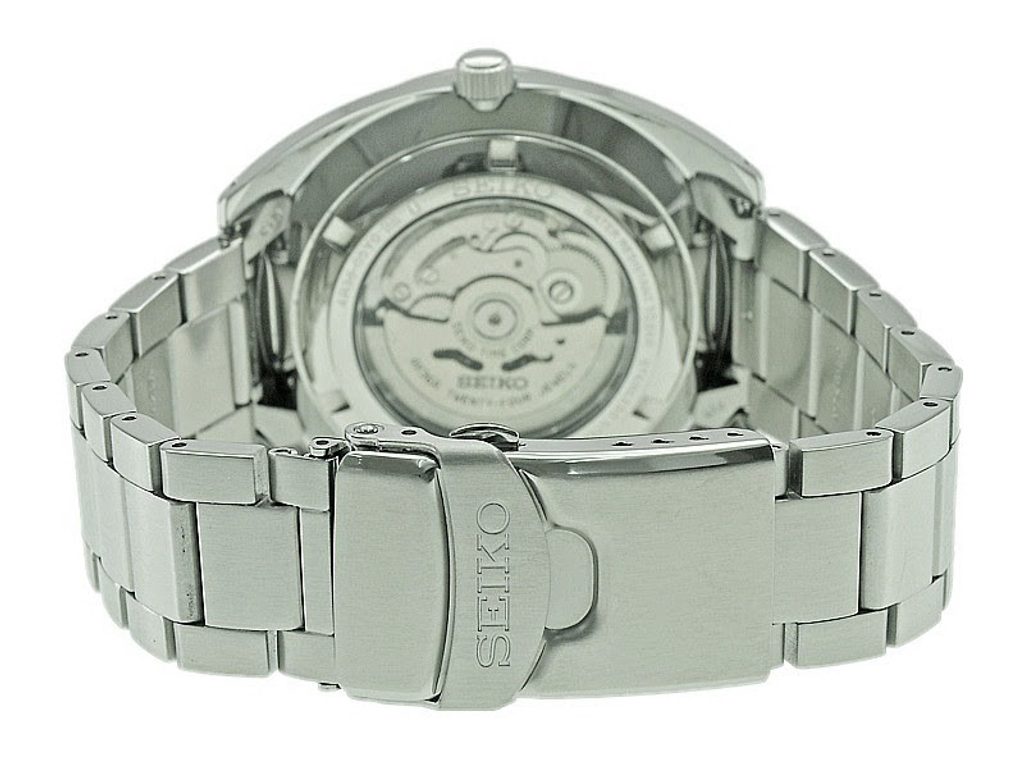 Model Seiko SRPB19K1 pohání automatický kalibr 4R36 s rezervou chodu až 41 hodin. Jeho precizní provedení můžete sledovat průhledným dýnkem hodinek. Číselník chrání minerální sklíčko Hardlex. Celoocelové provedení hodinkám dodává velmi elegantní vzhled a zároveň má i praktické zdůvodnění - vysokou odolnost. Vodotěsnost tohoto modelu je 100M, s hodinkami tak můžete beze strachu plavat. Nechybí ani ukazatel data a dne. Na hodinkách zaujme výrazný černý ciferník opatřený plastickými indexy na pozicích hodin. Dynamický vzhled hodinky získavají použitím minutové škály vyznačené po obvodu ciferníku. Průměr pouzdra činí 44 mm.