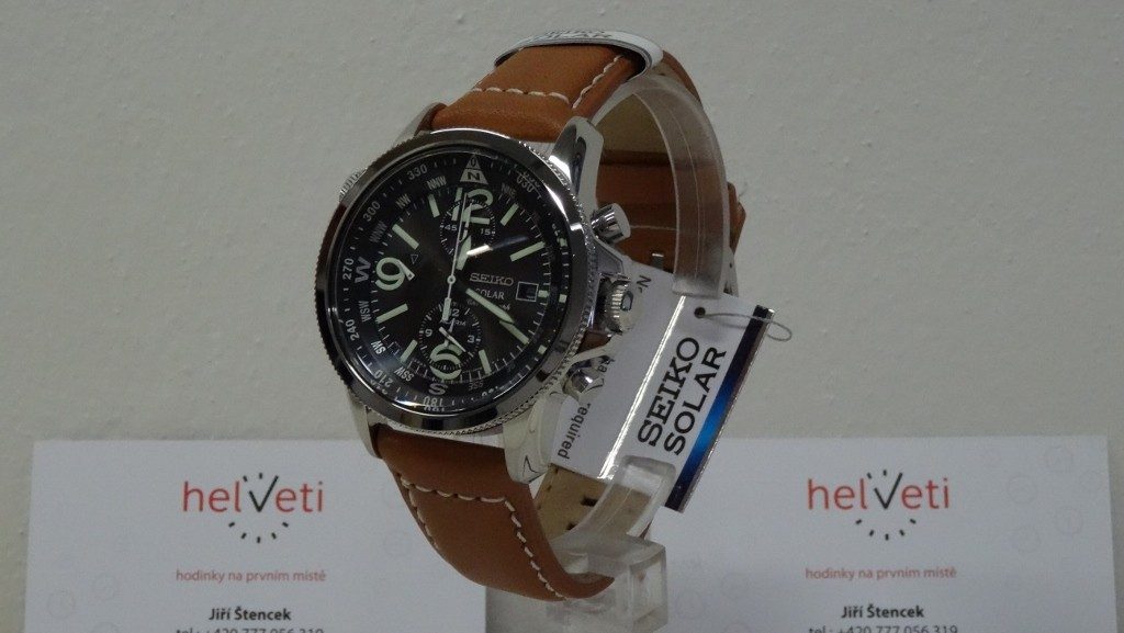 Pánské náramkové hodinky Seiko SSC081P1 se solárním pohonem jsou určeny všem, kteří mají rádi letecký styl. Disponují stopkami, budíkem, kompasovou lunetou a jsou vodotěsné do 100 m.