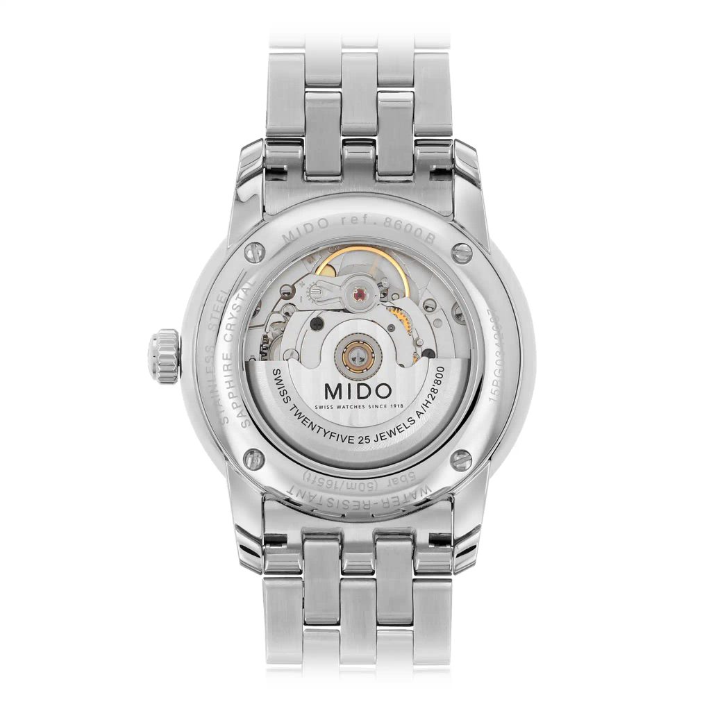 Hodinky Mido M8600.4.26.1 mají pouzdro včetně náramku vyrobené z ušlechtilé oceli 316L. V pouzdře spolehlivě tiká švýcarský mechanický strojek Mido Caliber 80 (základem je ETA C07.611) s automatickým nátahem. Ten pracuje na frekvenci 21600 polokmitů za hodinu, disponuje 25 kameny a především prodlouženou rezervou chodu 80 hodin. Činnost tohoto strojku lze pozorovat průhledným dýnkem. Na pozici 4-5. hodiny najdeme praktický ukazatel data.