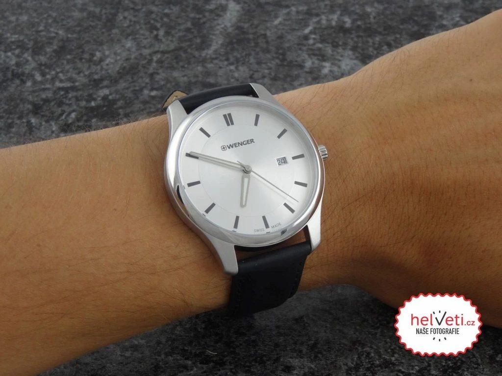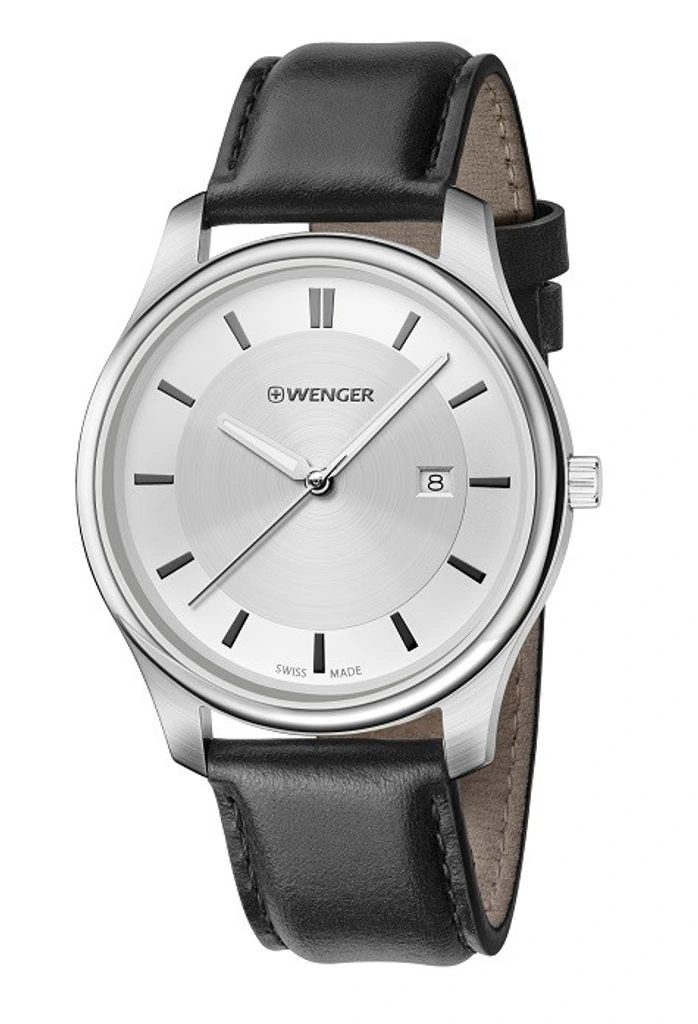 Pánské náramkové hodinky z nové modelové řady City Classic představené na jaře roku 2016. Hodinky Wenger City Classic 01.1441.102 se hodí na každodenní nošení ale i do společnosti. Hodinky disponují ocelovým pouzdrem a luminiscenčními ručičkami. Z funkcí dále disponují ukazatelem data na třetí pozici, vodotěsnost je 30m. V této cenové kategorii oceníte minerální sklíčko potažené safírovou vrstvou. Řemínek v černé barvě skvěle padne k stříbrnému ciferníku.