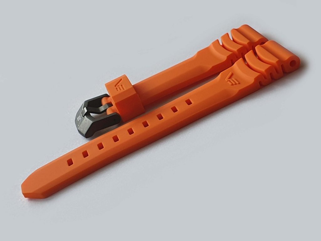 Řemínek je vyrobený z kvalitního silikonu využívaného pro medicínské účely. Díky své speciální chemické struktuře má jedinečné vlastnosti v porovnání s jinými přírodními materiály, a je mimořádně odolný vůči vnějším vlivům: