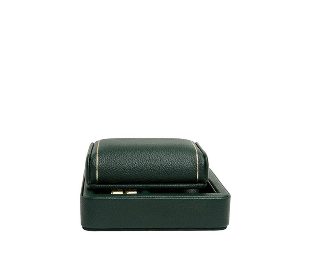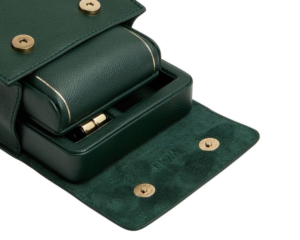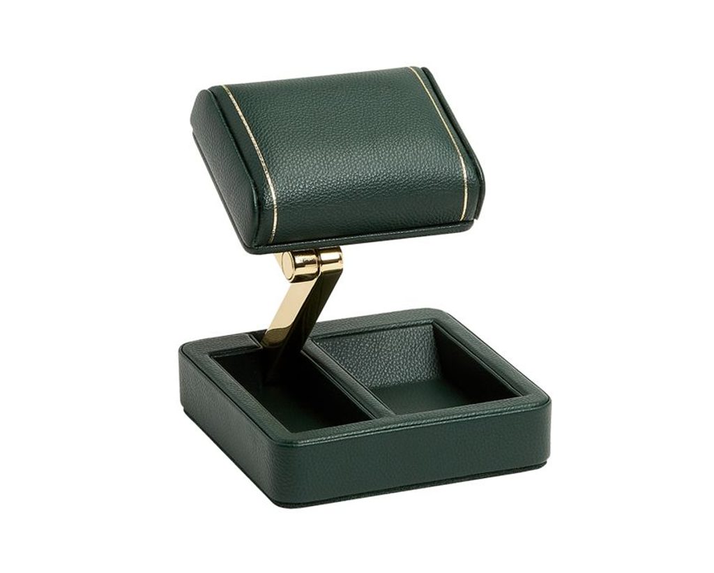 Elegantní stojan na hodinky Wolf British Racing 485441 pro jedny hodinky je ručně vyrobený z veganské kůže a vybavený patentovaným skládacím mechanismem. Může pochlubit funkčním, kompaktním a lehkým designem, který je ideální pro každého cestovatele, jenž se stará o své hodinky.