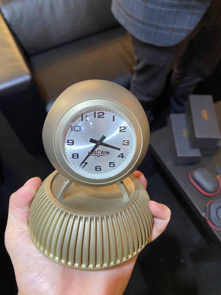 Vulcain znovu uvádí na trh ikonické hodiny z terminálu TWA na letišti JFK, architektonické mistrovské dílo modernistického designu 60. let od Eero Saarinena. Tato nová verze, reinterpretace v podobě kompaktních stolních hodin, věrně kopíruje původní formu s tělem z oceli 316L a irizující teplou šedou povrchovou úpravu.